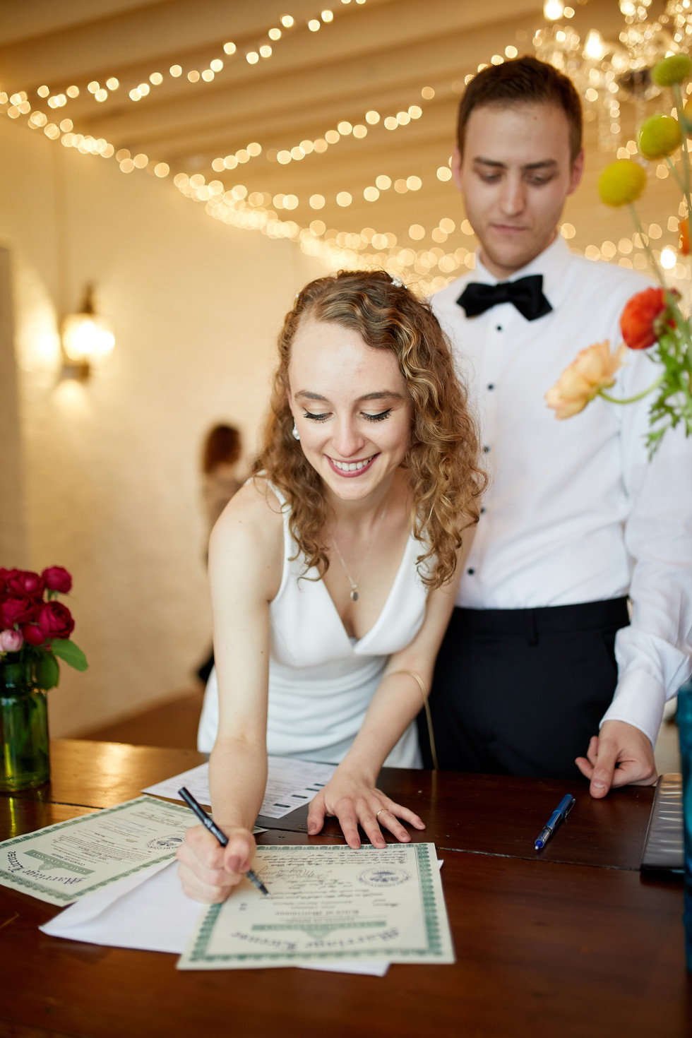 We found Ali upstairs in the bridal Suite with her sister and her two best friends. There, Ali sat criss-crossed facing a large mirror propped against a wall. A pair of old window's light stripped the dark from the room. The room was classic, with exposed brick and updated track lights giving a dim ambiance. We watched and captured as Ali put final touches on her make up, and hand wrote her vows to her betrothed.